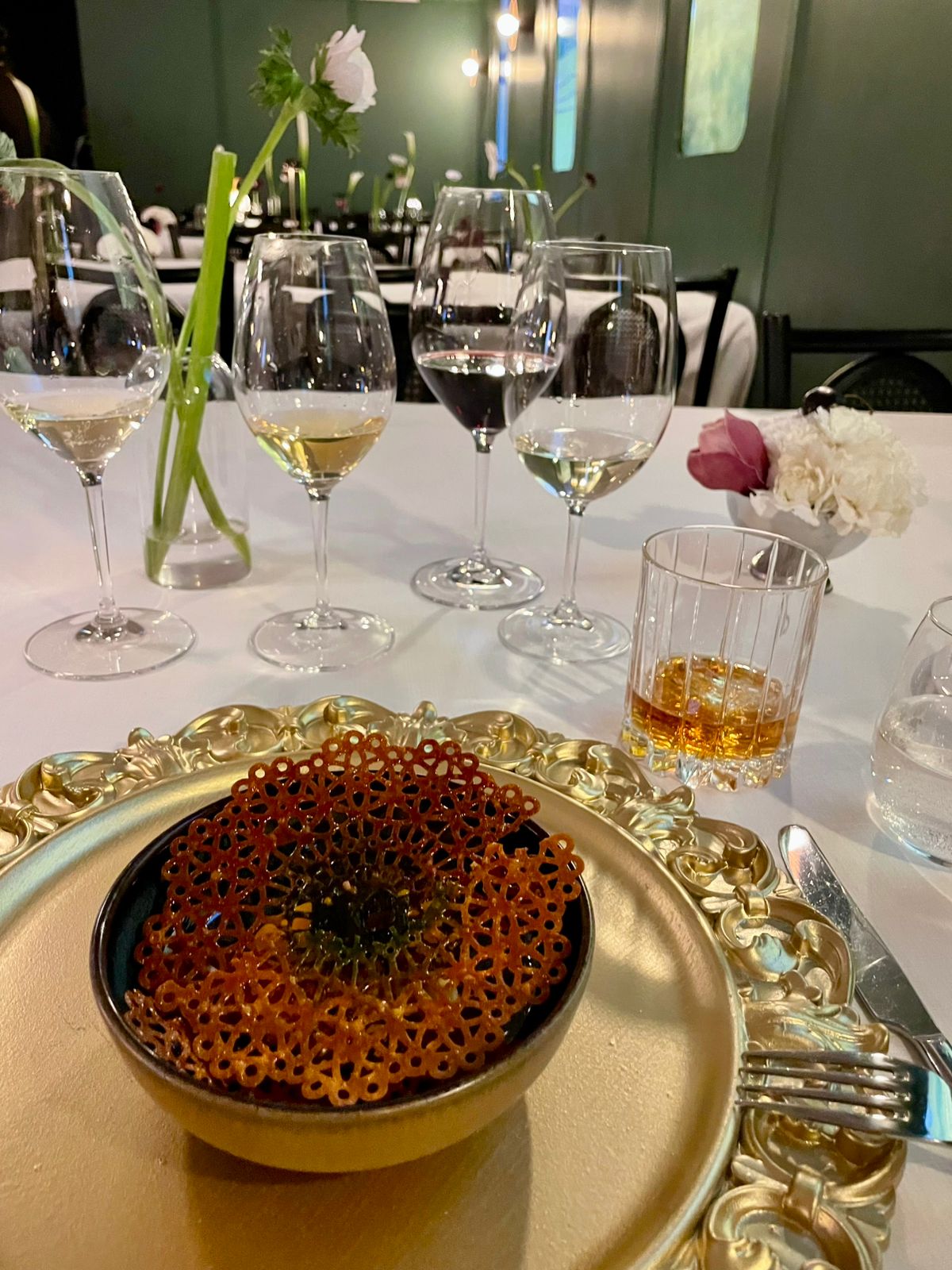 La experiencia gastronómica estuvo en manos del chef Santi Palacios, que sorprendió a los asistentes con un menú inspirado en la riqueza de la cocina mexicana contemporánea. Cada platillo se convirtió en un puente entre tradición e innovación, logrando que la comida no solo fuese un deleite, sino parte integral de la narrativa del evento.